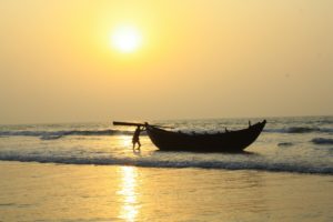 Fisherman and Boat during Sunrise in Sea Beach of Digha, West Bengal, India