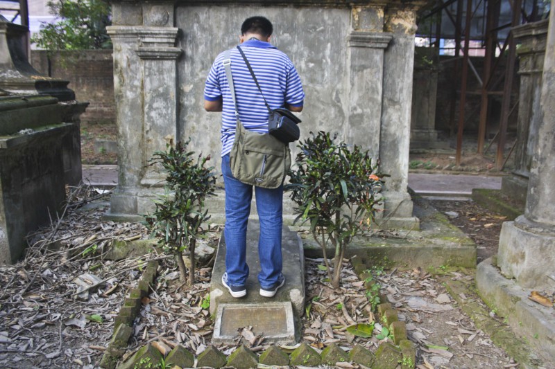 This photo is purely disrespectful. Period. No matter how keen you are in getting the inscription, you should not have stood on it like that considering its bad condition. Moreover, I don’t see why would you post such a photo on your blog. This photo is in bad taste. Should be removed.